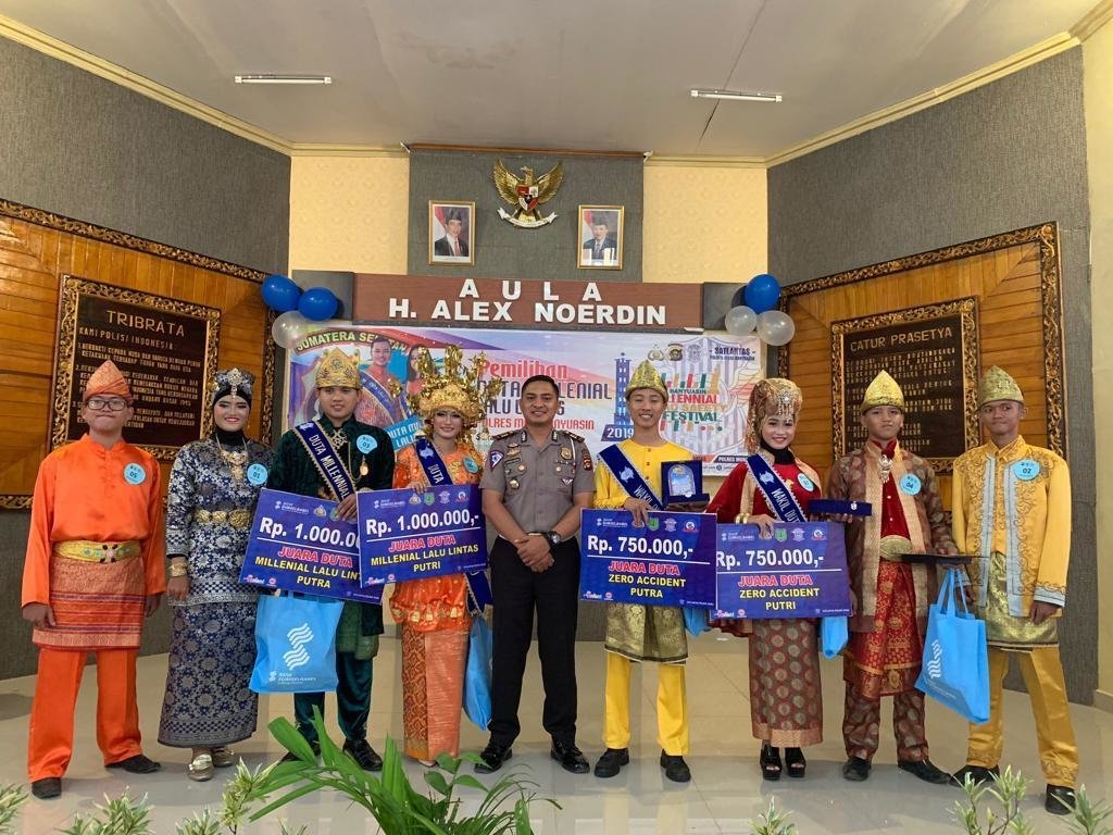 Selanjutnya pengumuman Duta millenial Berbakat dan Diumumkan langsung pemenang Duta Lalu Lintas dan Duta Zero Accident Polres Muba 2019 dengan pemasangan selempang Duta Lalu lintas dan Duta Zero Accident tahun 2019 serta pemberian hadiah oleh Kapolres muba dan Direktur Bank Sumsel Babel.