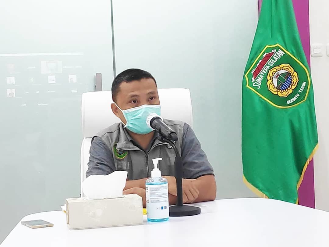 Palembang | Juru bicara gugus tugas penanganan Covid19 Sumsel Yusri mengumumkan perkembangan Corona Virus Disease19 (Covid19) Melalui video conference dengan awak media di Command Center, Minggu (17/5).