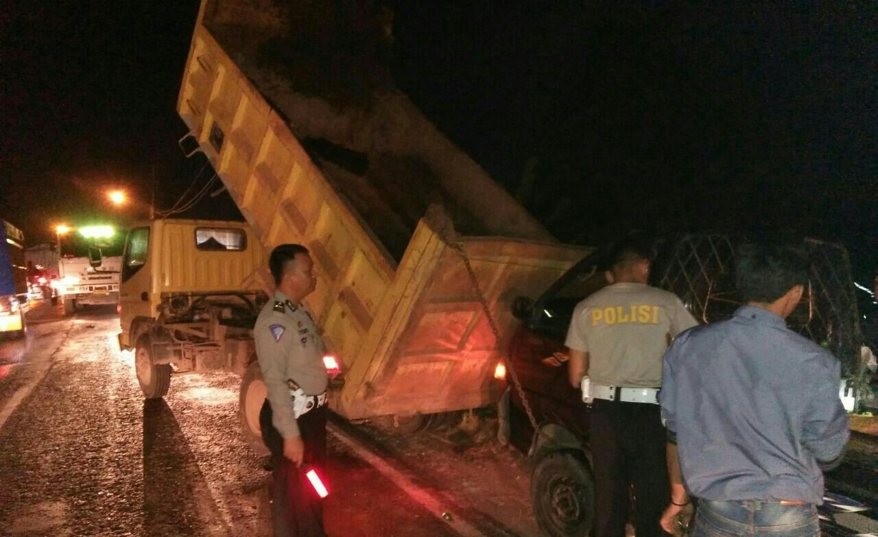Peristiwa lakalantas itu terjadi di Jalan Lintas Timur (Jalintim), tepatnya di perbatasan Desa Buluh Cawang dan Desa Banding Anyar, Kecamatan Kayuagung, Selasa (8/8) sekitar pukul 01.15WIB.