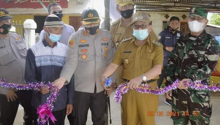 LAHAT l Peresmian Bansos bedah rumah Desa Jarai Kecamatan Jarai Kabupaten Lahat, dalam rangka HUT Bhayangkara Ke-75 Tahun 2021 oleh Bupati Lahat, Cik Ujang SH yang dalam hal ini diwakili oleh Wakil Bupati Lahat H Haryanto SE MM, Rabu (30/06/2021).