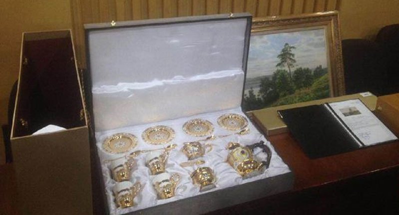 Darmansjah menuturkan, barang yang diterima Jokowi dari Rosneft itu adalah sebuah lukisan pemandangan alam, seperangkat alat penyaji minum teh, dan sebuah plakat.