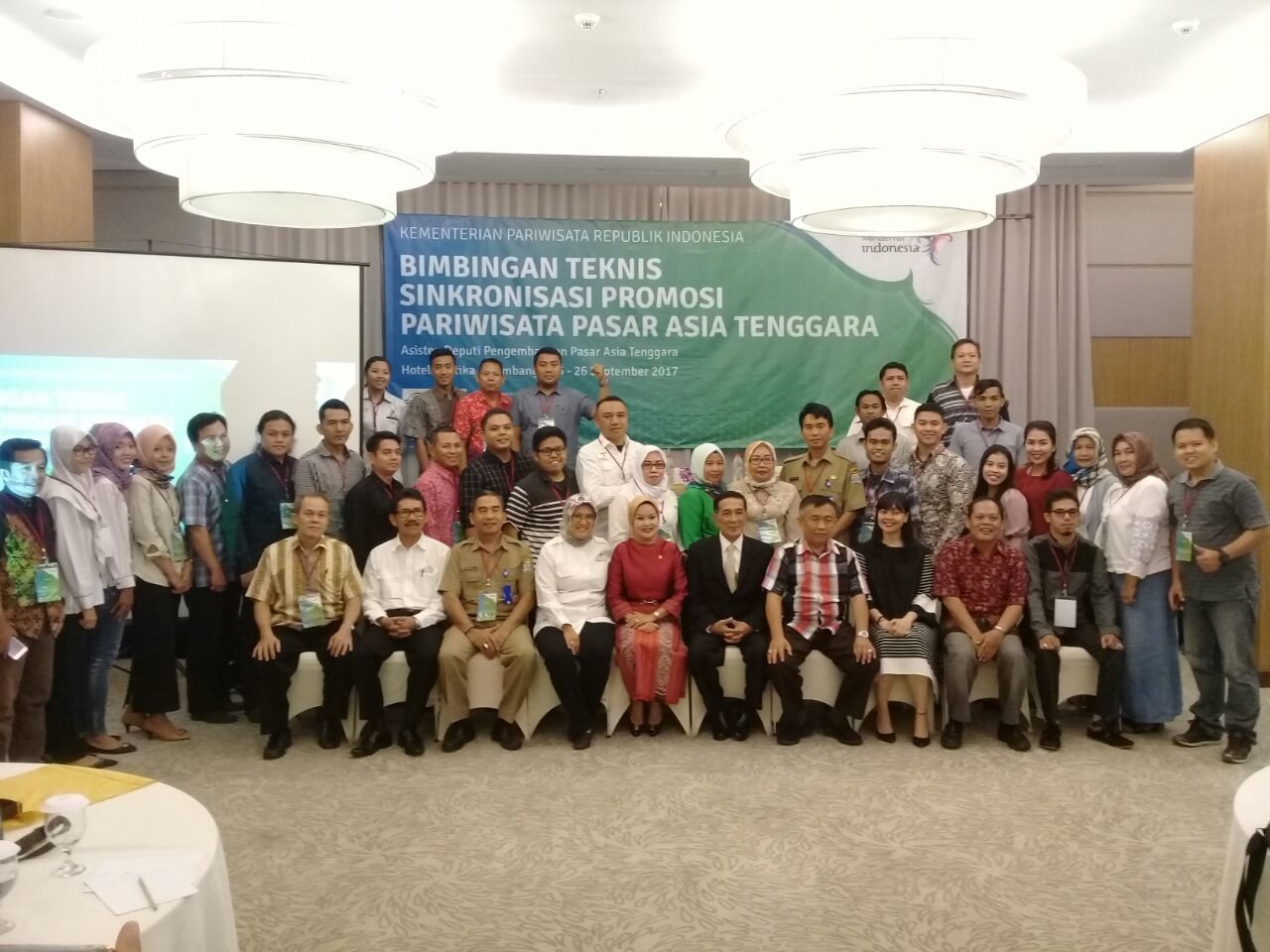 Dalam kegiatan Bimtek yang digelar Kementerian Pariwisata (Kemenpar) RI ini, hadir diantaranya Asisten Deputi Pengembangan Pasar Asia Tenggara Rizki Handayani Mustafa, Anggota Komisi X DPR RI Sri Melyana, Asisten I Bidang Pemerintahan dan Kesra Provinsi Sumatera Selatan (Sumsel) Akhmad Najib, serta sejumlah pejabat lainnya. (SFR)