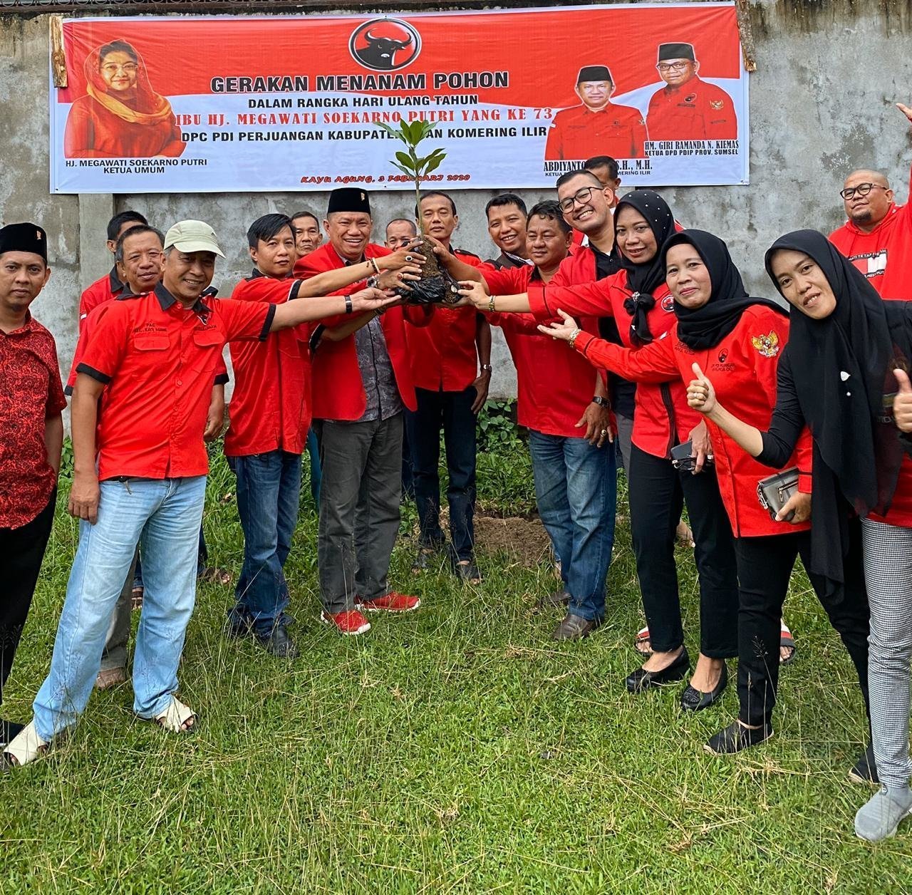 “Penanaman pohon ini dilakukan serentak se Indonesia dalam rangkah HUT PDIP ke 47 sekaligus memperingati hari ulang tahun Ibu Ketua Umum PDIP Ibu Hj Megawati Soekarnoputri,”ujar ketua DPC PDIP OKI, Abdiyanto Fikri, SH.,MH.