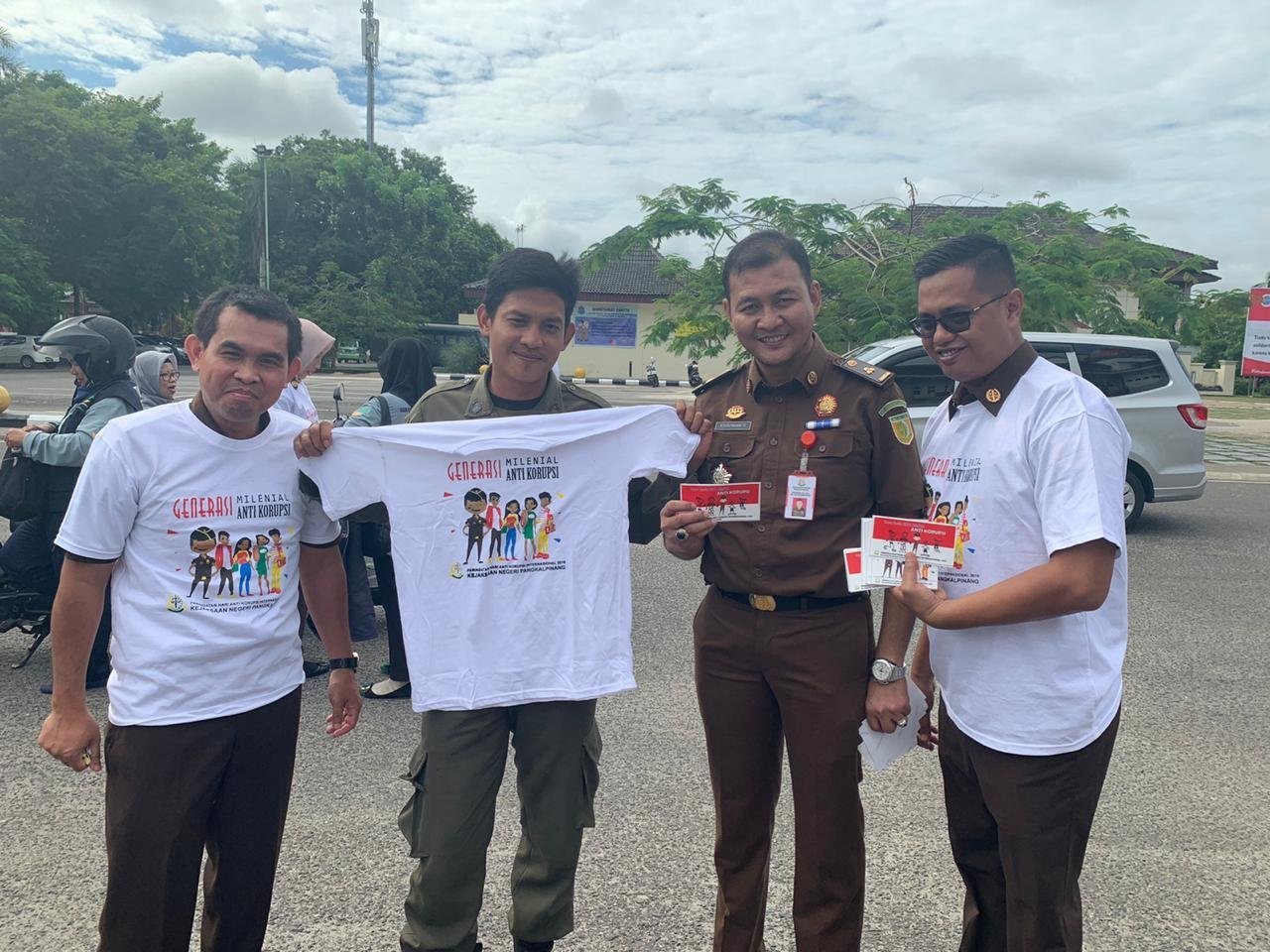 PANGKALPINANG | Untuk memperingati Hari Anti Korupsi Internasional (HAKI) yang diperingati setiap tanggal 9 Desember. Kejaksaan Negeri Pangkalpinang melaksanakan upacara gabungan dengan Kejaksaan Tinggi Babel yang dilanjutkan dengan sosialisasi hari anti korupsi dengan membagikan stiker dan baju kaos. Adapun tema haki tahun 2019 adalah “Bersama melawan korupsi, mewujudkan Indonesia maju”. Khusus tahun ini Kejari Pangkalpinang fokuskan generasi milenial anti korupsi.