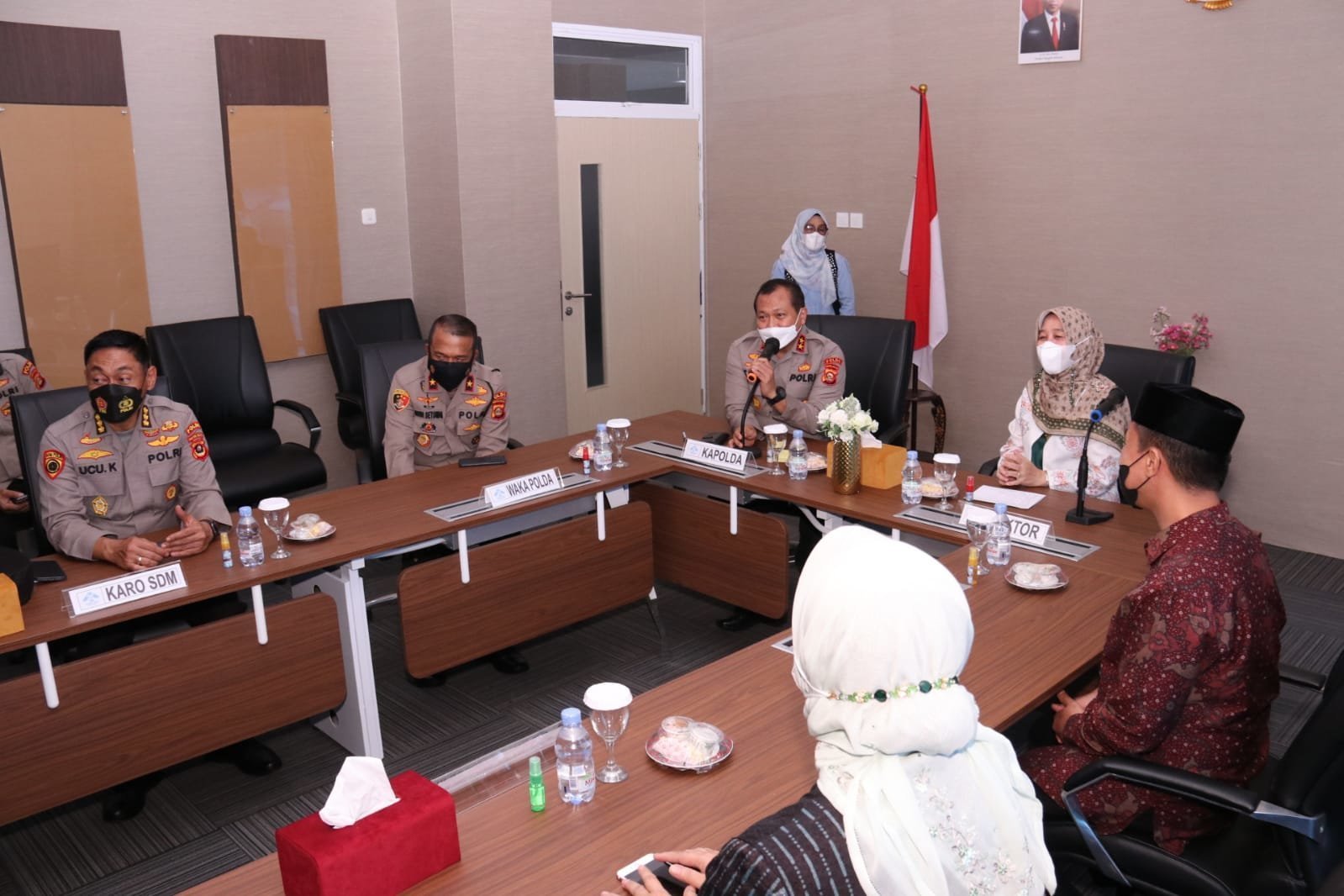 Palembang l Rektor Universitas Islam Negeri (UIN) Raden Fatah Palembang, Prof. Dr. Nyayu Khodijah, S.Ag, M.Si menyambut kunjungan silaturahmi Kapolda Sumatera Selatan, Irjen Pol. Toni Harmanto. M.H bersama jajarannya di kampus Jakabaring Palembang, Jumat (10/09/2021).