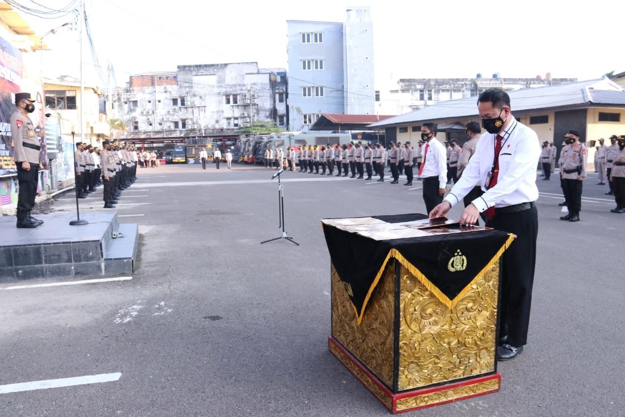 Palembang l Kapolda Sumsel Irjen Pol.Prof.Dr.Eko Indra Heri S.M.M memimpin apel pagi personel Polri dan PNS, Senin (24/05/2021) bertempat di lapangan apel Mapolda Sumsel.
