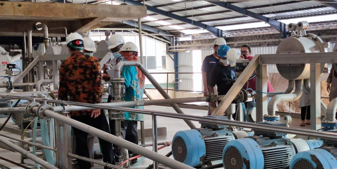 BANGKA – Kepala Laboratorium Tehnik Pangan dan Pasca Panen Fakultas Teknologi Pertanian Universitas Gajah Mada, Joko Nugroho Wahyu Karyati didampingi oleh Kepala Bappeda Kabupaten Bangka melakukan kunjungan ke perusahaan pengolahan tepung tapioka PT. Bangka Asindo Agri di Kenanga, Sungailiat Bangka, Jumat (9/4/2021).