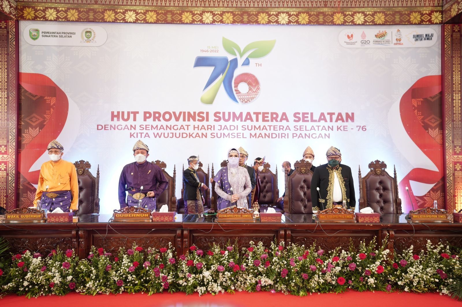 PALEMBANG | DPRD Provinsi Sumatera Selatan menggelar Rapat Paripurna Istimewa Peringatan Hari Jadi Provinsi Sumatera Selatan Ke-76, dipimpin Oleh Ketua DPRD Prov. Sumsel; Hj. RA. Anita Noeringhati, SH, MH bersama Wakil Ketua, H.M. Giri Ramanda N Kiemas, SE, MM dihadiri oleh Gubernur Sumsel; H. Herman Deru, Wakil Gubernur Sumsel; Ir. H. Mawardi Yahya bertempat di Dining Hall Jakabaring Sport City Palembang, Selasa (17/5/2022).
