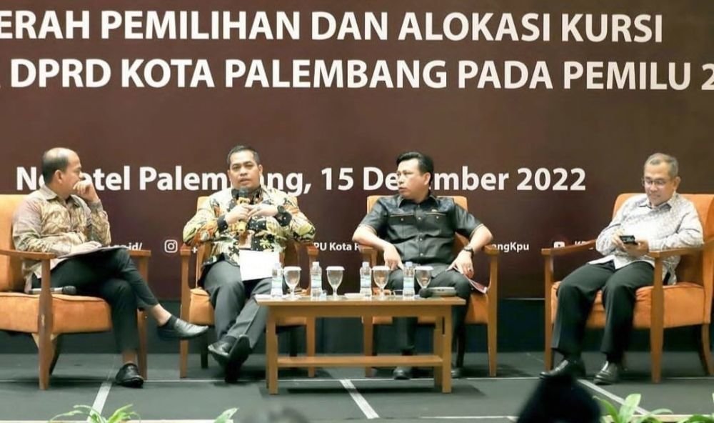 “KPU Palembang memberikan dua Opsi dalam Rancangan penataan Dapil dan alokasi kursi anggota DPRD Palembang pada Pemilu 2024, yang akan diajukan ke KPU RI. Penataan Dapil dipengaruhi 7 prinsip, salah satunya jumlah penduduk, dimana dari hasil rakor di pontianak, bahwa Kota Palembang ada pergeseran Dapil maupun alokasi kursi dikarenakan adanya penambahan jumlah penduduk,” kata Ketua KPU Palembang Syawaludin. (ADV)
