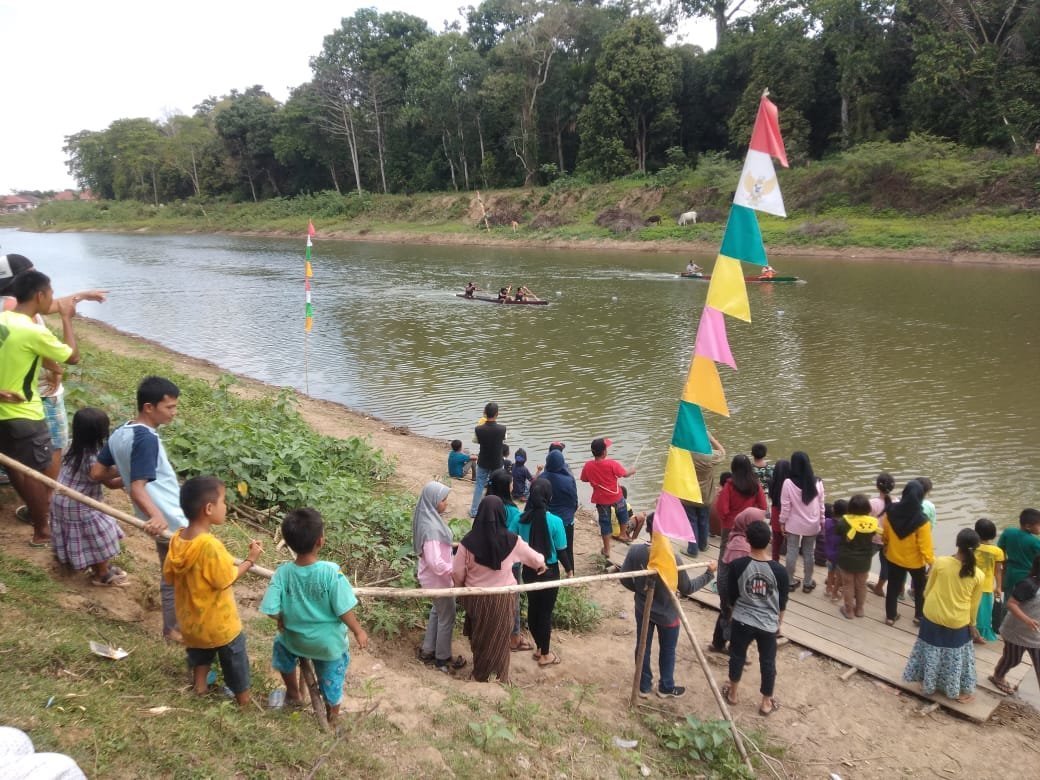 MUARA ENIM – Karang Taruna Desa Muara Lawai, Kecamatan Muara Enim, Kabupaten Muara Enim, Sumatera menggelar lomba bidar mini di Danau Pecah Paye desa setempat, Jumat (21/8/2020).