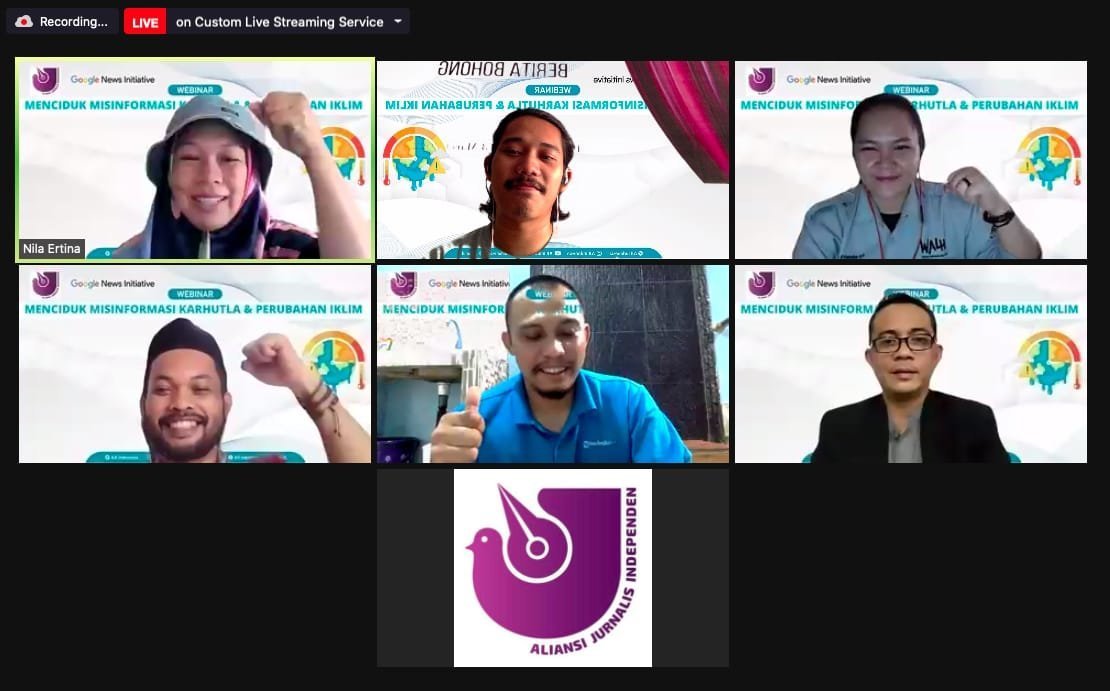 PALEMBANG – Aliansi Jurnalis Independen (AJI) Palembang bersama Google News Initiative menggelar webinar bertajuk ‘Menciduk Misinformasi Karhutla dan Perubahan Iklim’, Kamis, (14/7/2022).