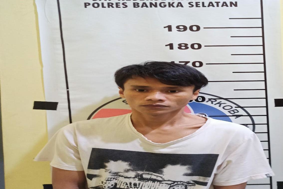 TOBOALI – Parlindungan Harahap (27), warga Dusun Simpang Baru, Desa Rindik ditangkap Satresnarkoba Polres Basel saat berada di sebuah rumah yang terletak di Jl Teladan Mayor Munzir, Kelurahan Teladan, Kecamatan Toboali, Minggu (27/9/2020) malam karena terlibat peredaran narkoba.