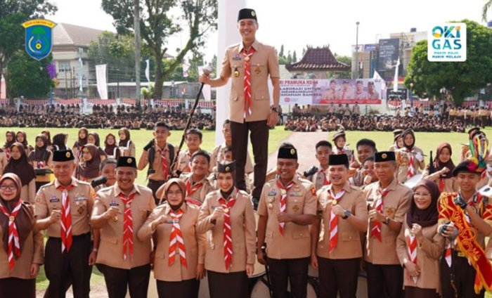 OKI – Ratusan anggota gerakan Pramuka dari berbagai tingkatan memadati halaman Kantor Bupati Ogan Komering Ilir (OKI) pada apel besar Hari Pramuka ke-64 tahun 2025, Kamis (14/8/2025).