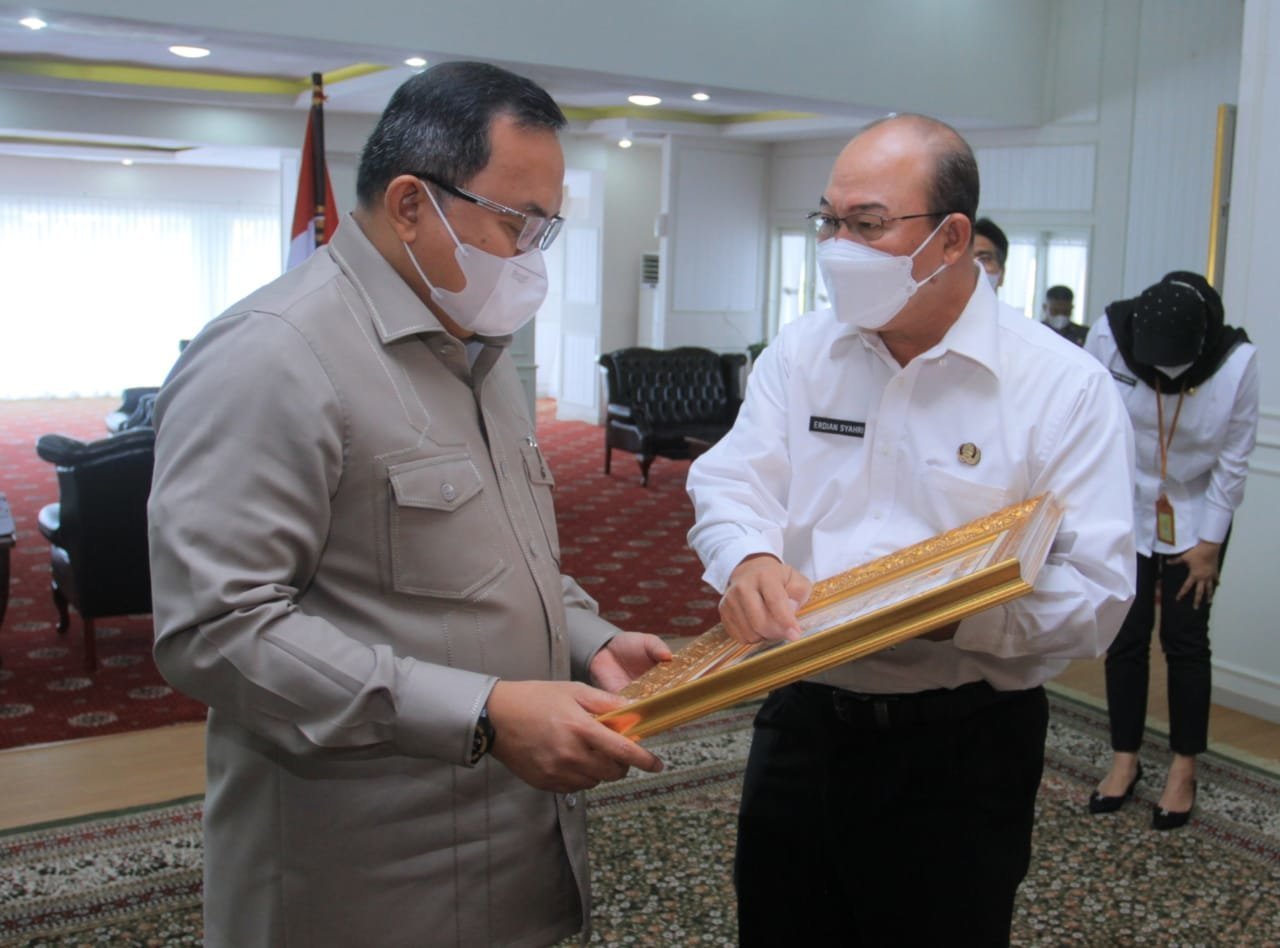 MUSI BANYUASIN – Setelah menerima penghargaan pada 9 Maret 2021 yang lalu sebagai Unit Penyelenggara Pelayan Publik dengan Kategori Pelayanan Prima tahun 2020 dari Kementerian Pendayagunaan Aparatur Negara dan Reformasi Birokrasi (Kemenpan RB), Kepala Dinas Penanaman Modal dan Pelayanan Terpadu Satu Pintu (DPMPTSP), Erdian Syahri menyerahkan penghargaan itu kepada Bupati Bupati Muba Dr H Dodi Reza Alex Noerdin, di Guest House Griya Bumi Serasan Sekate, Senin (15/3/2021).