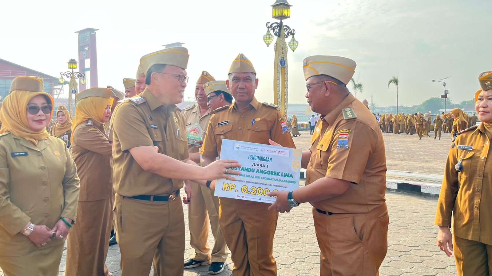 Hadiah diserahkan langsung oleh Wali Kota Palembang H Ratu Dewa diwakili oleh Asisten III Setda kota Palembang Akhmad Bastari Yusak dan disaksikan oleh Kepala BKPSDM Kota Palembang, Yanurpan Yany.
