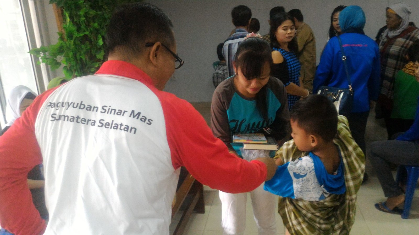 KAYUAGUNG I Paguyuban Sinar Mas Sumatera Selatan (Sumsel), memberikan bantuan bingkisan kepada anak – anak yang mengikuti sunatan massal pada acara pelantikan pengurus Persatuan Wartawan Indonesia (PWI) Kabupaten Ogan Komering Ilir (OKI), Senin (16/10/2017).