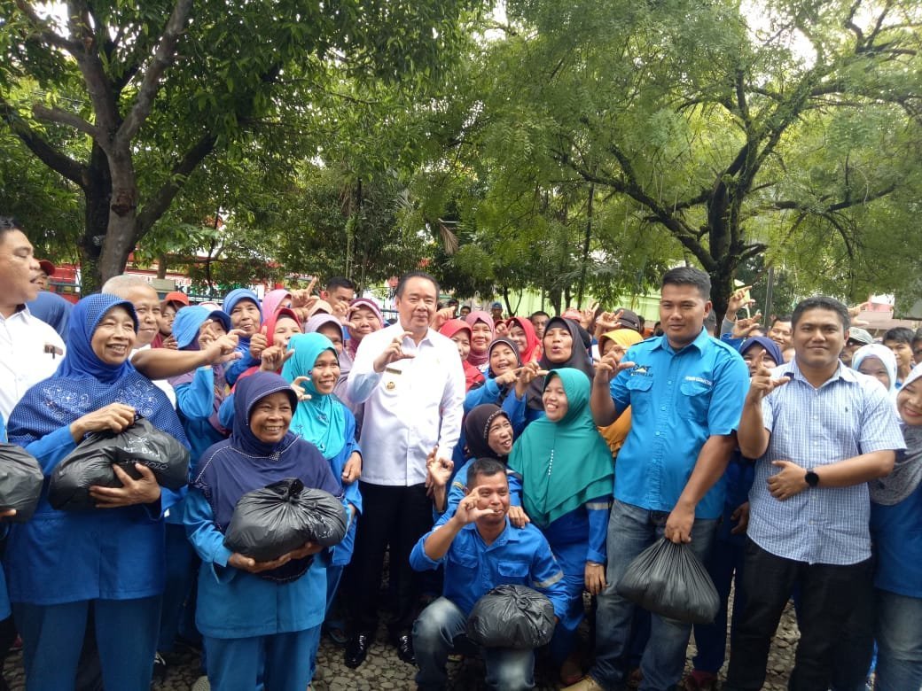 Lahat | Ratusan petugas kebersihan Kabupaten Lahat, Rabu (18/3) tersenyum senang.  Pasalnya, pahlawan kebersihan ini mendapatkan paket sembako dari Bupati Lahat, Cik Ujang SH.