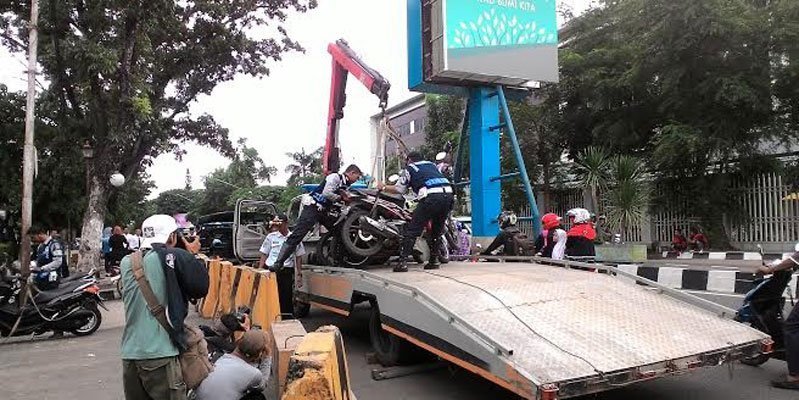 PALEMABANG I Dinas Perhubungan (Dishub) Kota Palembang terus melakukan penertiban terhadap marknya parkir liar yang ada di sejumlah jalan protokol, salah satunya di Jalan Kampus depan komplek Palembang Square (PS) Mal puluhan kendaraan roda dua diangkut oleh petugas dishub dengan menggunakan alat berat dan truk.