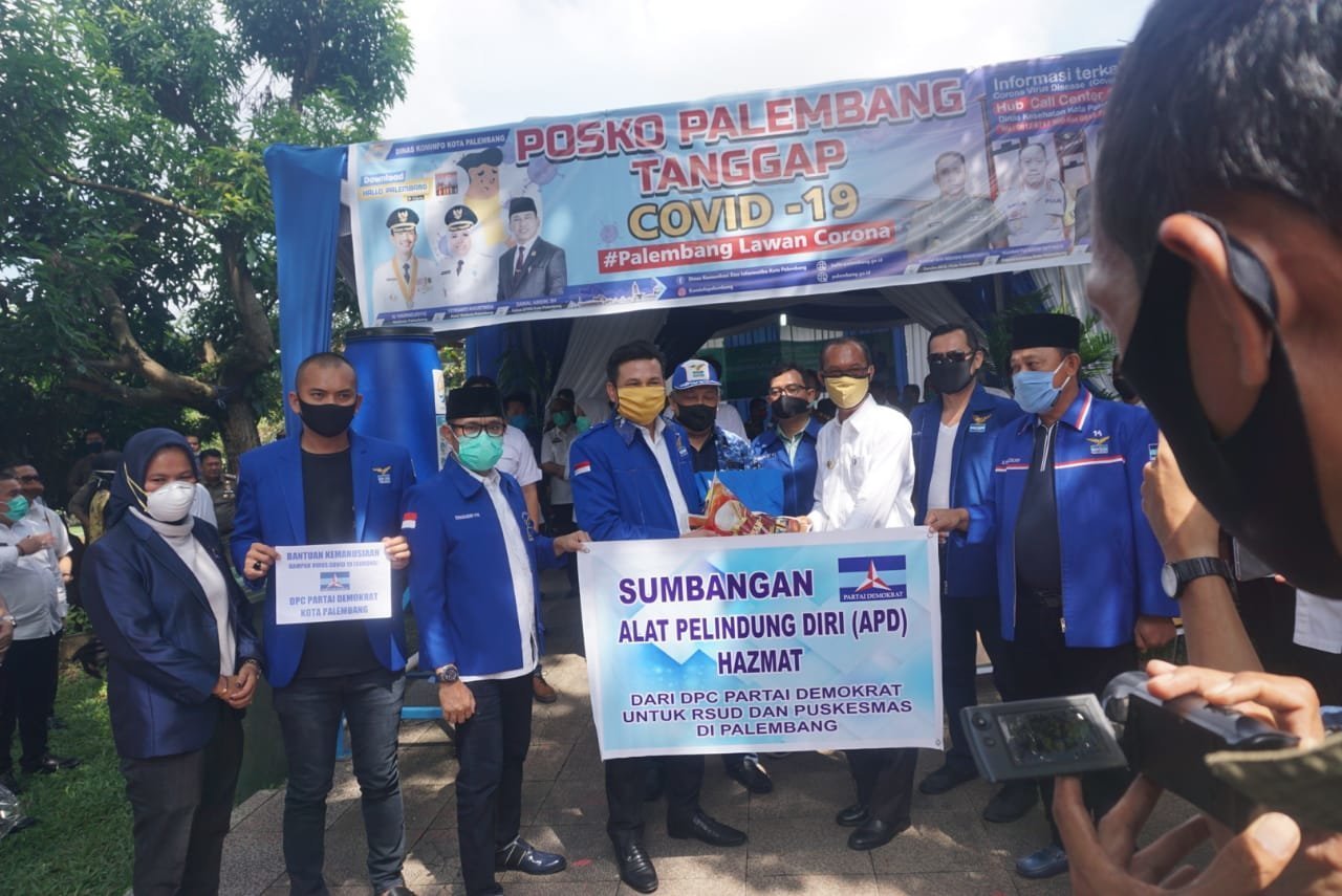 PALEMBANG | Walikota Palembang, H Harnojoyo menerima langsung bantuan dari Dewan Pimpinan Cabang (DPC) Demokrat kota Palembang berupa sembako dan dari Pempek Beringin berupa Alat Pelindung Diri (APD), guna meringankan situasi yang sulit dan tanggap darurat akibat pandemi virus corona.