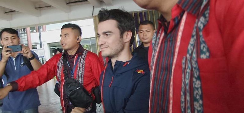 Pebalap 30 tahun tersebut menunggu beberapa menit sebelum meninggalkan bandara menuju hotel.