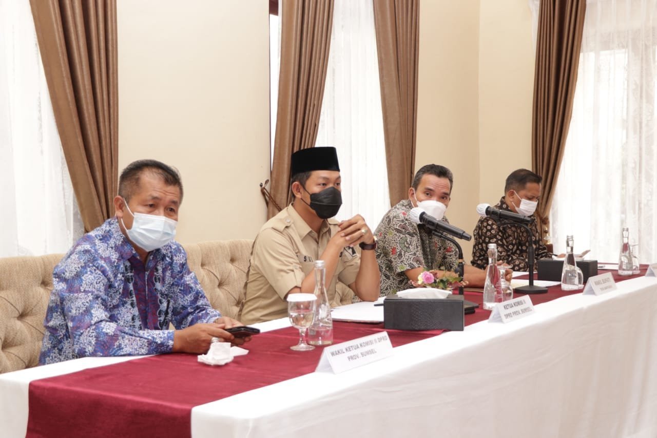 Kedatangan Ketua, Wakil dan anggota Komisi II DPRD Provinsi Sumsel beserta rombongan disambut langsung oleh Wakil Bupati Muba Beni Hernedi, di Rumah Dinas Wakil Bupati Muba, Jum’at (25/6/2021).