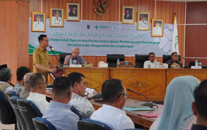 OKI – Forum Tanggung Jawab Sosial dan Lingkungan Perusahaan (TJSLP) atau Forum CSR Kabupaten Ogan Komering Ilir (OKI) menggelar dialog terbuka dan rapat kerja daerah (rakerda) tahun 2025 dengan tema ‘Sinergi Pemerintahan Daerah dan Pelaku Usaha dalam Pembangunan Daerah yang Berpihak pada Masyarakat dan Lingkungan’.