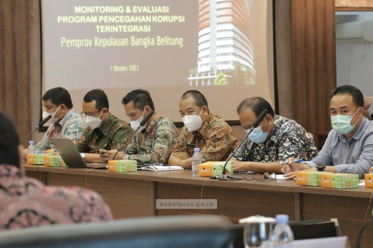 PANGKALPINANG – Merespon cepat surat Komisi Pemberantasan Korupsi (KPK) RI tertanggal 24 September 2021, Pemerintah Provinsi Kepulauan Bangka Belitung (Pemprov Babel) gelar Rapat Koordinasi (Rakor) Kegiatan Monitoring dan Evaluasi (Monev) Pelaksanaan Program Pencegahan Korupsi Terintegrasi tahun 2021, bersama KPK RI yang diwakili Kasatgas Pencegahan Wilayah II KPK, dan dinas terkait di Ruang Pasir Padi Kantor Gubernur Babel, Kamis 7 Oktober 2021.