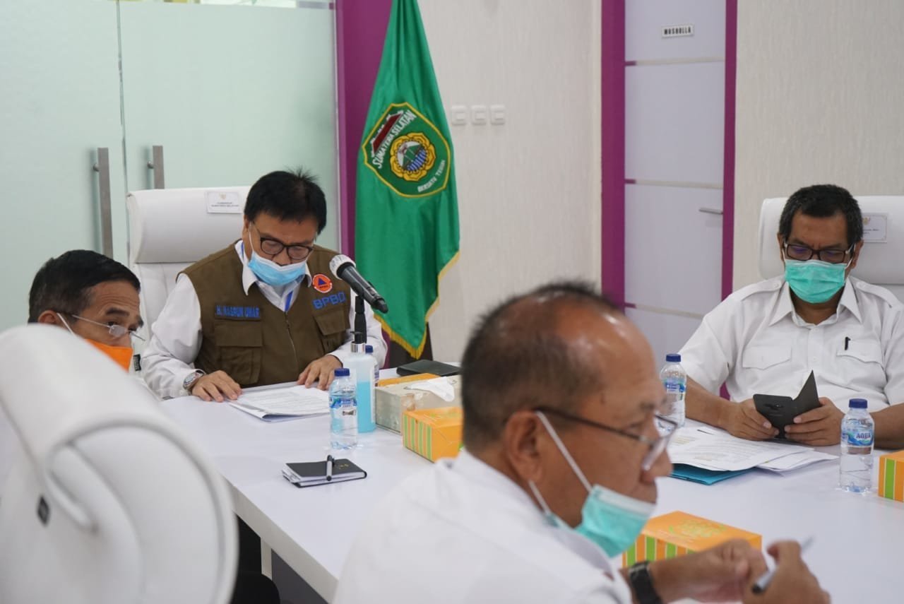 Gubernur Sumsel H Herman Deru melalui Sekretaris Daerah (Sekda) H. Nasrun Umar saat mengikuti rapat yang dipimpin langsung oleh tenaga ahli Utama Kedeputian I Kantor Staff Presiden Bidang Infrastruktur dan Tranafortasi, Febry Calvin Televlavta terkait dengan percepatan pembangunan lanjutan jalan tol Simpang Indralaya – Muara Enim. Melalui Video Conference di Commond Center Kantor Gubernur, Rabu (22/4).