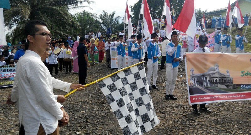 Pawai ta’aruf tersebut dilepas Camat Talang Ubi Asrohi didampingi ketua BDI Pertamina Pendopo Uus Taufik Firdaus, dengan mengambil start dihalaman masjid Jami komplek Pertamina dan finish di lapangan Gelora November Pendopo, Minggu (2/10).