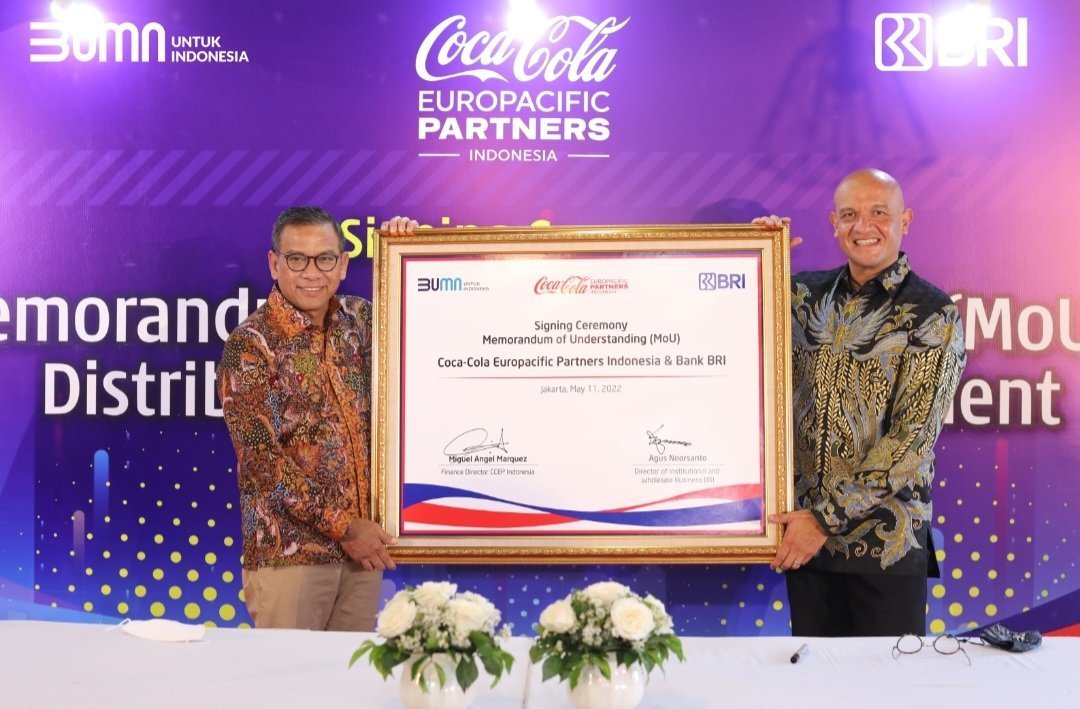 Hal tersebut ditandai dengan penandatanganan Memorandum of Understanding (MOU) Layanan Perbankan antara Financial Director CCEP Indonesia & PNG Miguel Marquez dengan Director of Institutional and Wholesale Business BRI Agus Noorsanto di Jakarta, Rabu, 11 Mei 2022. Dalam kesempatan yang sama, sekaligus ditandatangani Perjanjian Kerjasama Distributor Financing antara Distributor CCEP Indonesia dengan BRI.