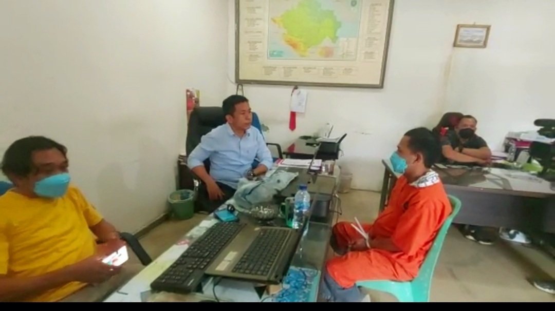 Tersangka Amek diamankan petugas saat berada dikawsan Jalan Rawa Jaya Lorong Masadaya Kelurahan Pahlawan Kecamatan Kemuning Palembang, Senin (23/08/2021) sekira pukul 01.30 WIB.