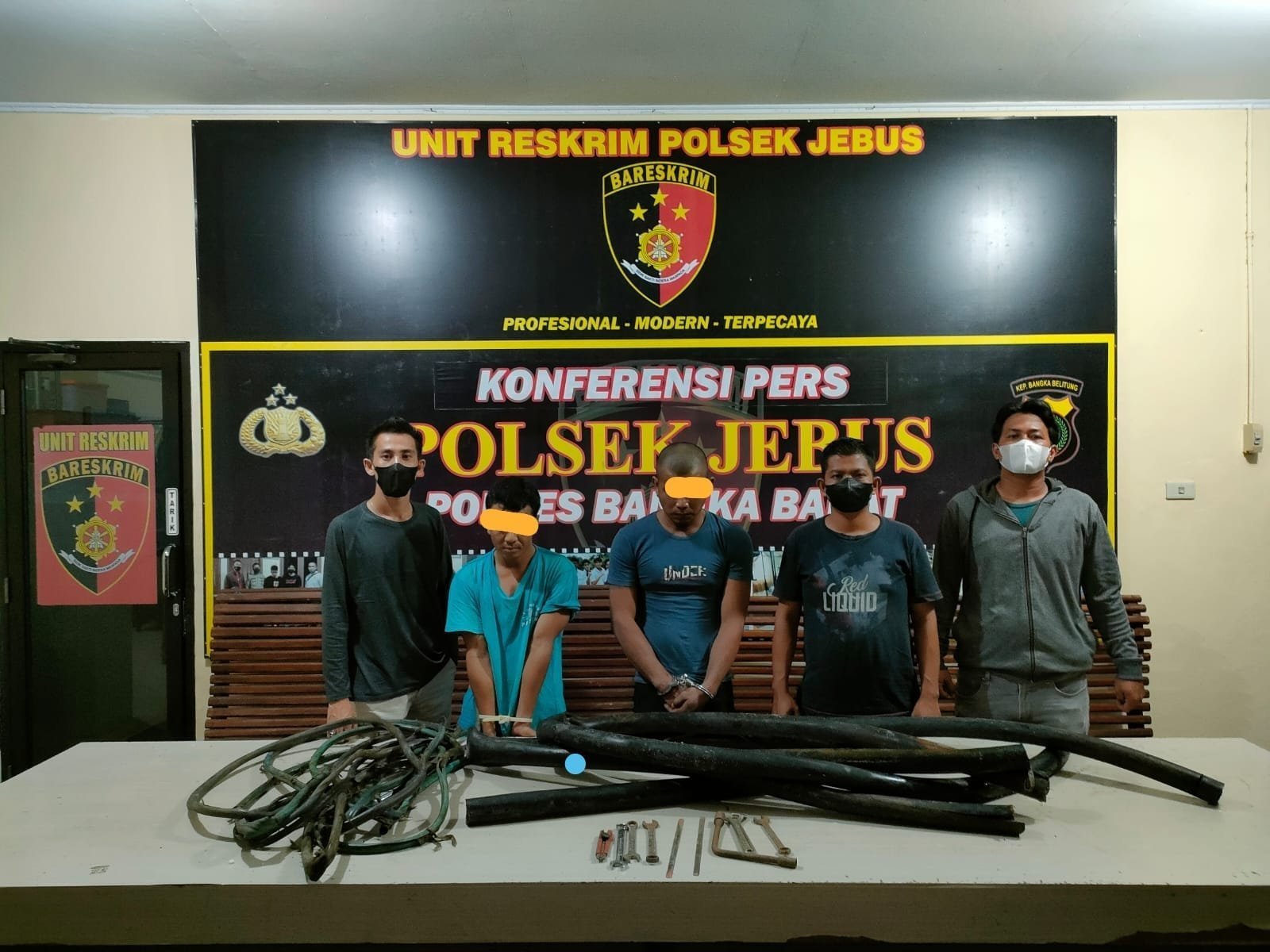 BANGKA BARAT – Polsek Jebus Polres Bangka Barat berhasil mengamankan pelaku pencurian yang terjadi di Gudang Smelter Empat, Desa Sekarbiru, Kecamatan Parittiga Kabupaten Bangka Barat. Sedikitnya dua orang berhasil diamankan dalam operasi ini.