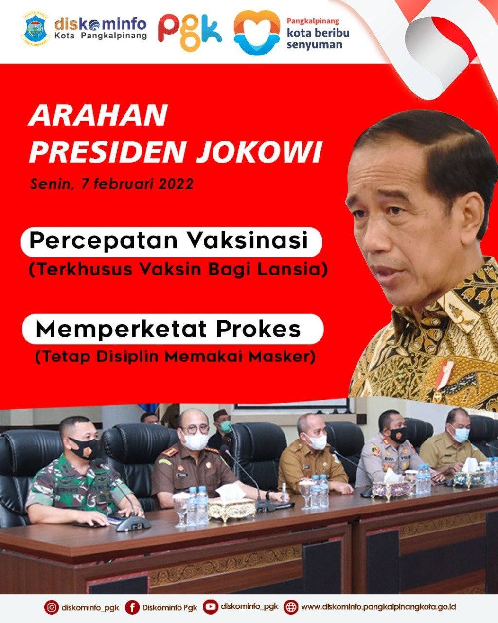 PANGKALPINANG – Walikota Pangkalpinang, Maulan Aklil bersama Forkopimda Pangkalpinang mengikuti pengarahan Presiden Republik Indonesia kepada seluruh kepala daerah beserta jajaran Forkopimda kabupaten dan kota se-Indonesia, Senin (7/2/2022).