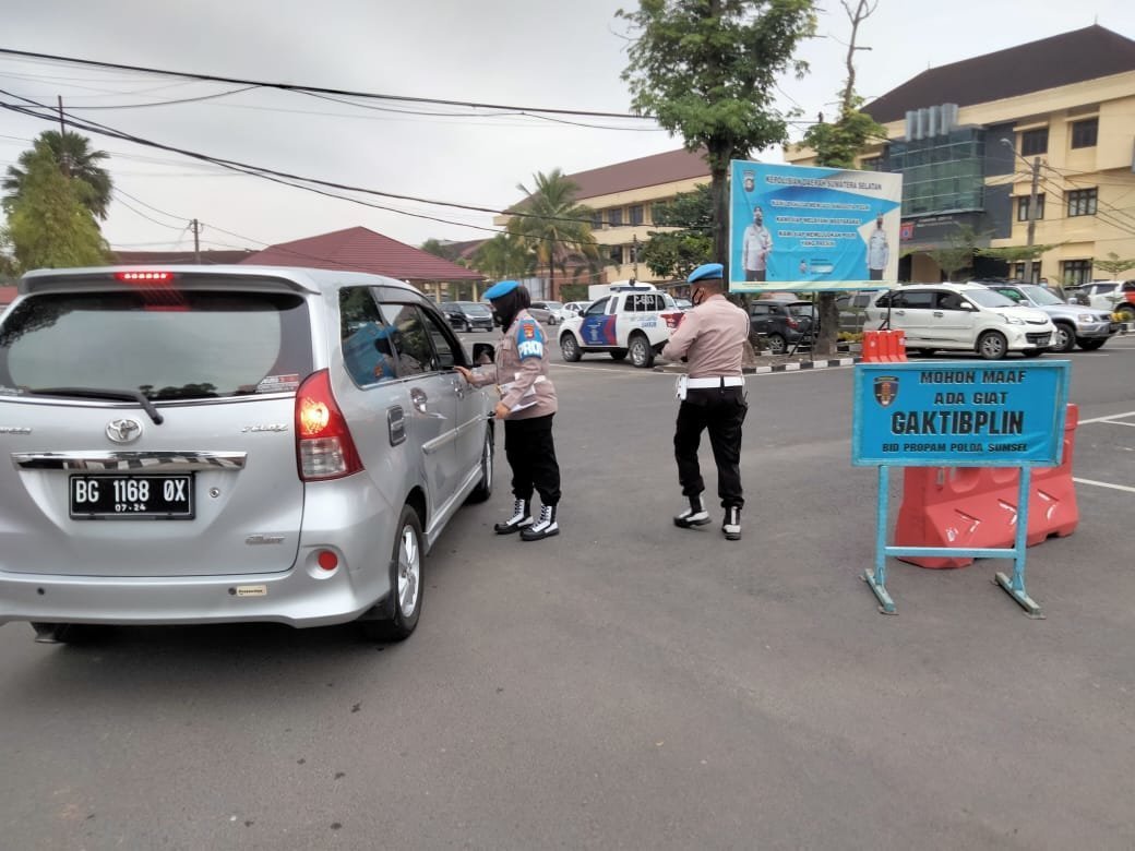 PALEMBANG l Kabid Propam Polda Sumsel Kombes Pol Agus Halimudin. SIK melalui Kaur Binplin Subbid Provos Kompol Ricky Nugraha, Sik, Msi bersama Kanit, Panit dan anggota Subbid Provos lainnya memimpin kegiatan Penegakkan, Penertiban dan Disiplin (Gaktibplin) terhadap kendaraan anggota Polri, PNS Polri, PHL Polda Sumsel, pegawai kantin dan semua kendaraan pribadi maupun dinas yang memasuki Mapolda Sumsel, Senin (31/01/2022).