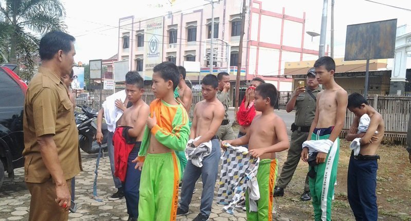 EMPAT LAWANG I Sedikitnya 10 pelajar di ibu kota Kabupaten Empat Lawang, Kecamatan Tebing Tinggi terjaring razia Satuan Polisi Pamong Praja (Satpol pp), Selasa (24/1).