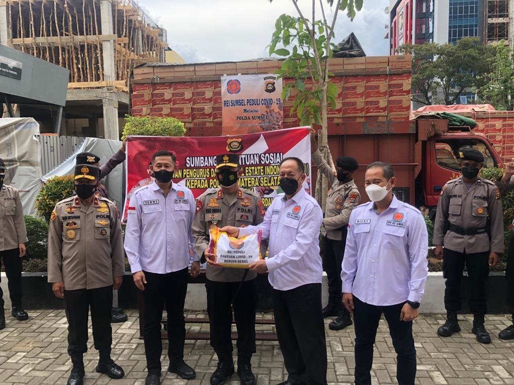 Palembang l Dewan Pengurus Daerah (DPD) Realestat Indonesia (REI) Sumatera Selatan (Sumsel) melaksanakan Bakti Sosial (Baksos) untuk masyarakat yang terdampak Covid-19 melalui Kapolda Sumsel Irjen Pol Prof Dr Eko Indra Heri S. MM di Mapolda Sumsel, Senin (09/08/2021).