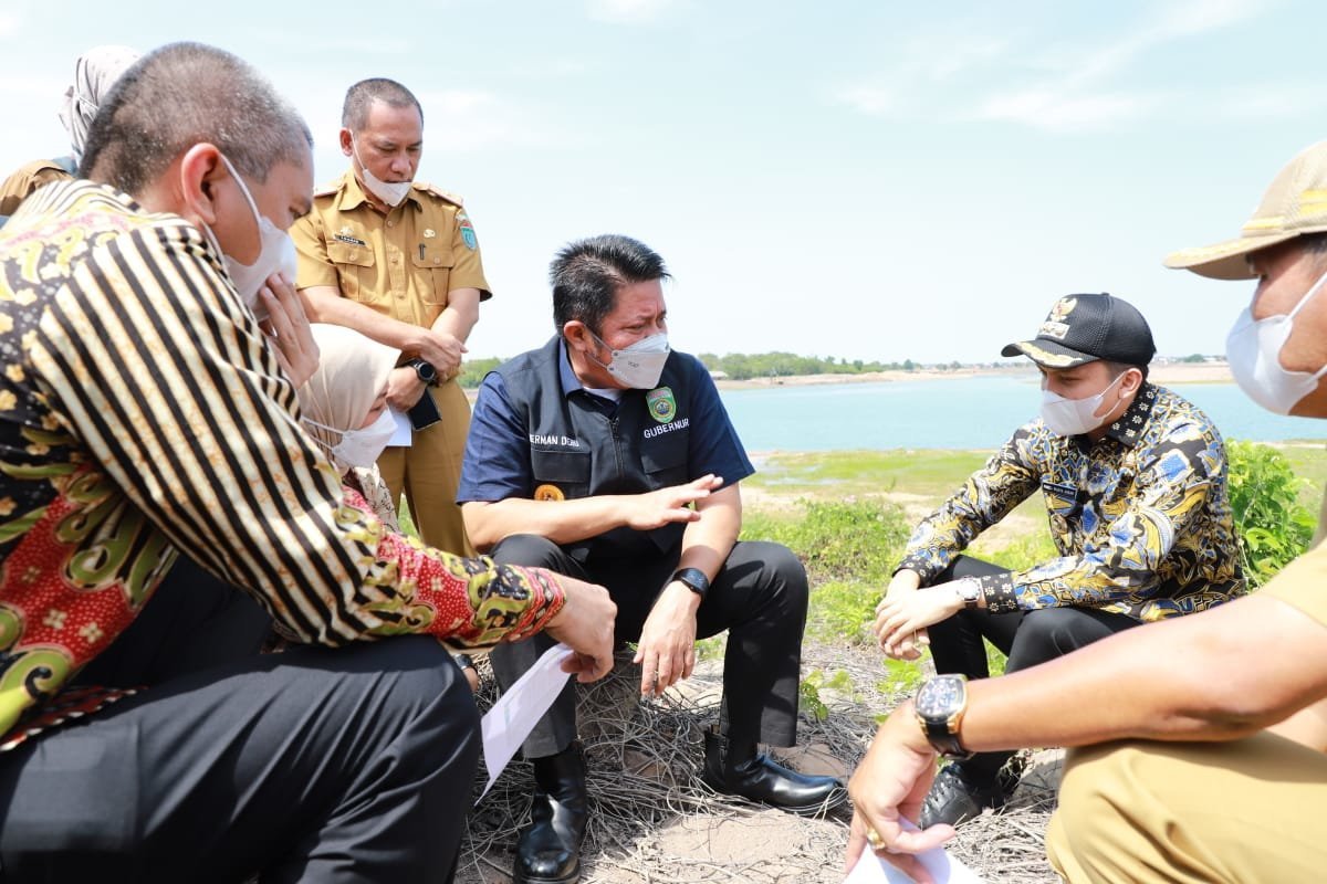 OGAN ILIR – Gubernur Sumsel H Herman Deru peninjauan lahan yang luasnya lebih kurang 7.000 meter untuk dibangun akses jalan keluar Tol Palindra di kawasan Kampus Unsri Indralaya, Selasa (8/6).