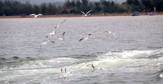 Beberapa perahu berisi beragam sesajian. Ada nasi, ikan, jajanan pasar, telur, sayur sampai daging kambing. Perahu berkumpul di tengah laut. Semua berdoa dipimpin seorang tokoh agama. Setelah itu, satu per satu sajian diturunkan ke laut. Perahu dan warga kembali ke daratan dan melanjutkan pesta laut.