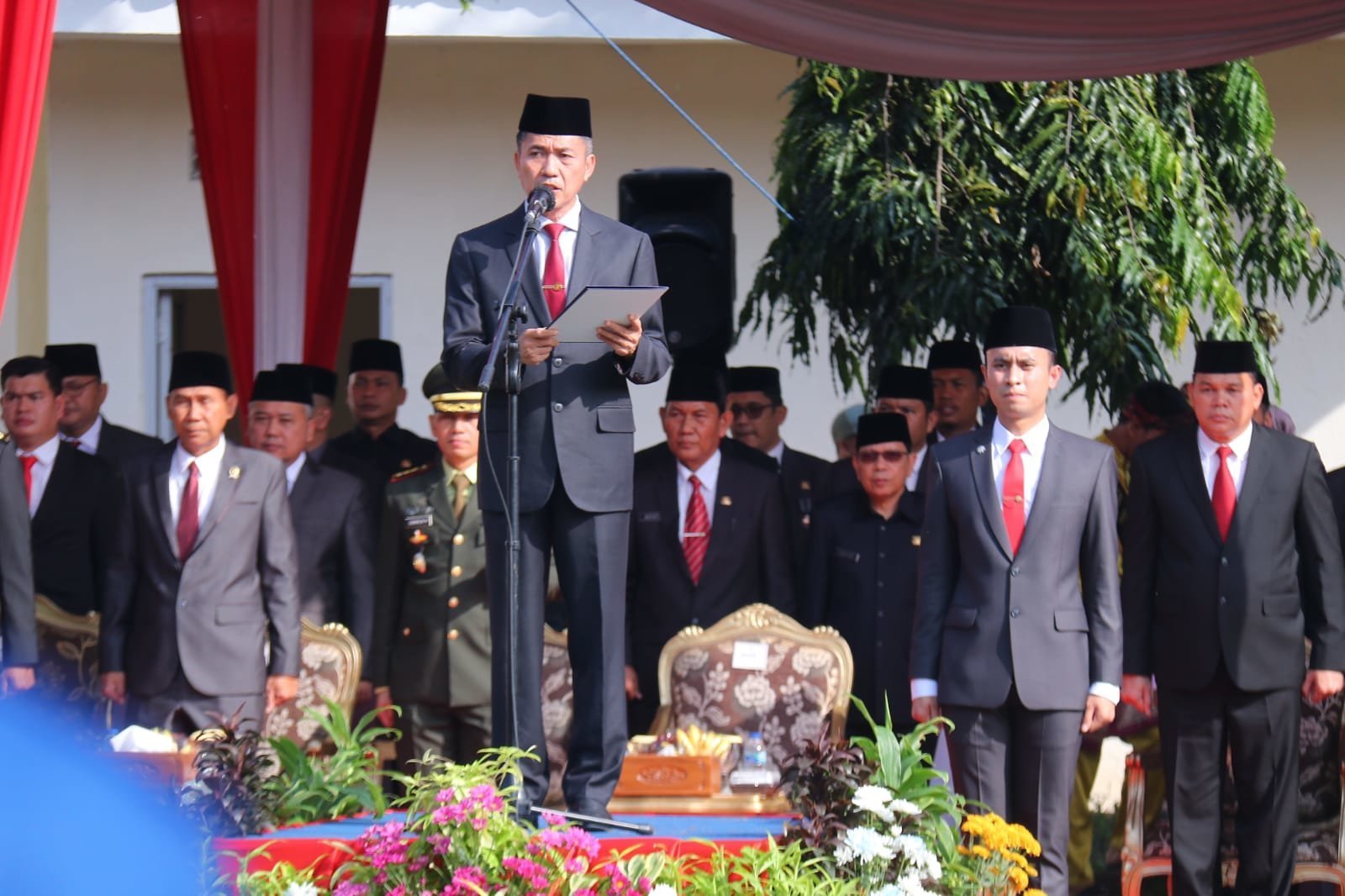 “Satu hal harapan kita, semoga ini tidak hanya menjadi ajang seremonial berupa upacara, tetapi yang lebih penting dari itu adalah mengisi makna dan nilai-nilai pancasila termasuk butir-butir Pancasila yang ada di dalamnya,” kata Sekretaris Daerah (Sekda) kota Palembang, Ratu Dewa selaku Inspektur upacara.