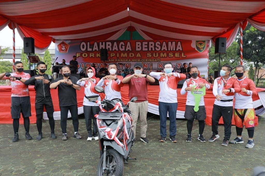 Bahkan untuk menjadikan olahraga bersama tersebut lebih meriah Gubernur menyiapkan 4 unit sepeda motor sebagai hadiah doorprize bagi peserta yang beruntung.