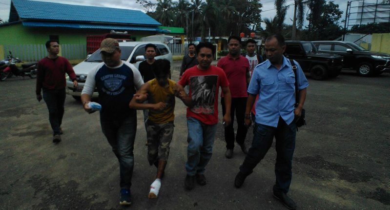 Tetapi polisi dengan sigap melumpuhkan pelaku dengan cara menghadiahi timah panas dibagian kaki sebelah kiri agar tidak kehilangan buruannya.