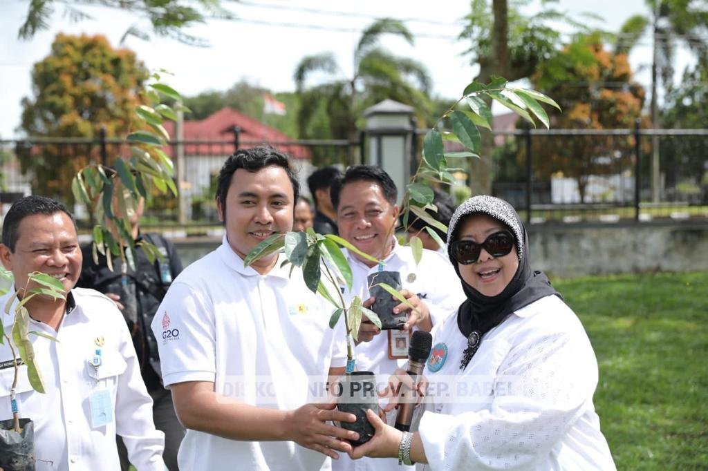 “Hari ini, bersama Ibu Iriana dan Ibu Wury, kita menanam 30 batang bibit Alpukat Roro dan membagikan 100 bibit Durian Namlung. Bibit yang sudah kita tanam ini kita jaga supaya bisa besar dan berbuah seperti yang kita harapkan,” ungkap Pj Ketua Tim Penggerak Pemberdayaan dan Kesejahteraan Keluarga (TP PKK) Kep. Babel, Sri Utami yang turut menghadiri acara.