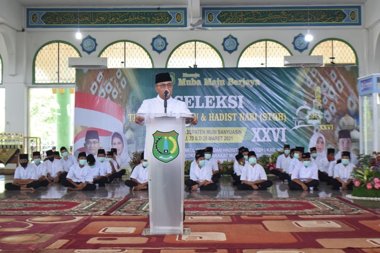 Bupati Muba Dr H Dodi Reza Alex Noerdin diwakili Sekretaris Daerah Kabupaten Muba, Drs H Apriyadi MSi membuka pelaksanaan STQH sekaligus mengukuhkan dewan hakim dan juri STQH XXVI tingkat Kabupaten Muba tahun 2021.