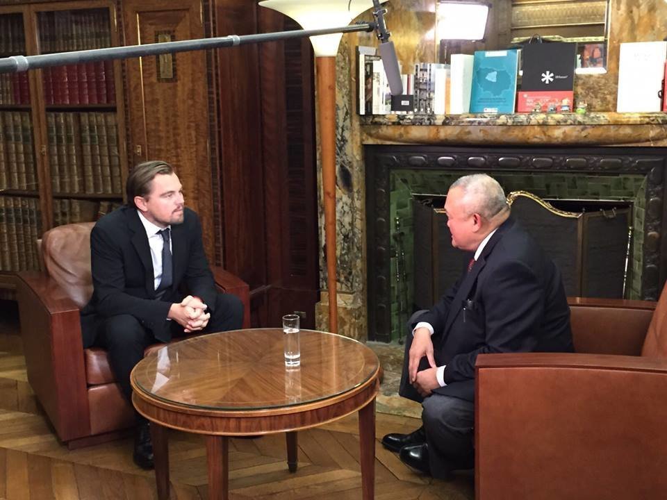 Alex-Noerdin-tengah-diwawancarai-Leonardo-Caprio-saat-kegiatan-perubahan-iklim-di-Paris.-Foto-Najib-Asmani.