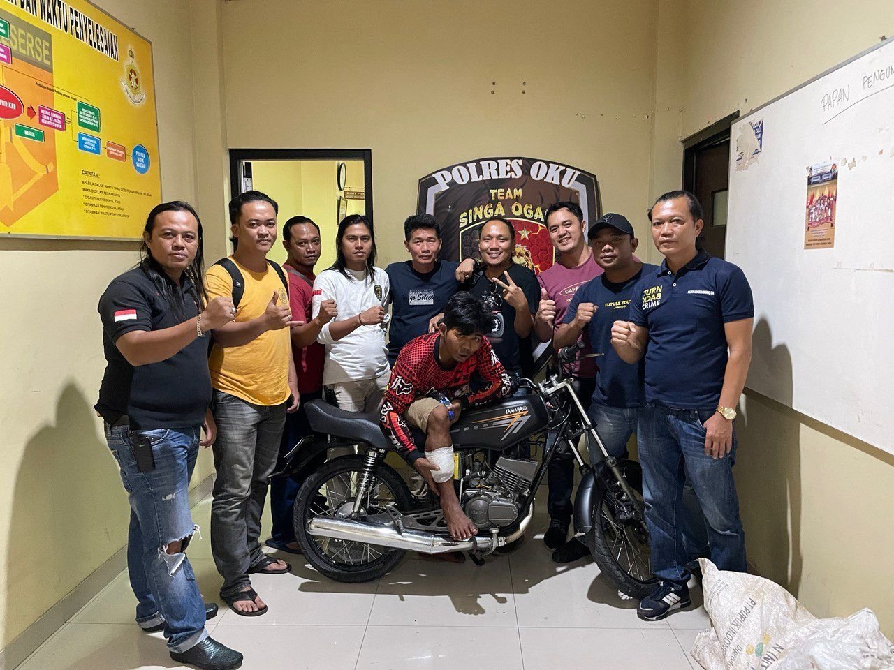 Mendapati informasi Terhadap Tersangka Sumarno yang telah melakukan pencurian berupa sepeda motor tersebut, sedang berada di Sepancar Lawang Kulon, kemudian Team resmob singa ogan langsung melakukan penangkapan Terhadap tersangka, untuk melakukan proses hukum selanjutnya tersangka berikut barang bukti dibawa menuju Mapolres OKU.(HARISON)