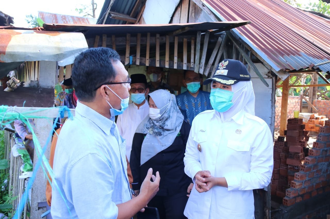 Wakil Walikota Palembang, Fitrianti Agustinda bersama Badan Zakat Nasional (Baznas) Kota Palembang berserta beberapa pengurus dari Muhammadiyah Palembang melihat langsung kondisi rumah Komarudin berukuran sekitar 4×6 berpapan kayu yang reyok di gang sempit dan sedikit becek akitbat hujan yang tidak layak huni sudah mulai disusun dengan batu bata dari bantuan Lazismu.