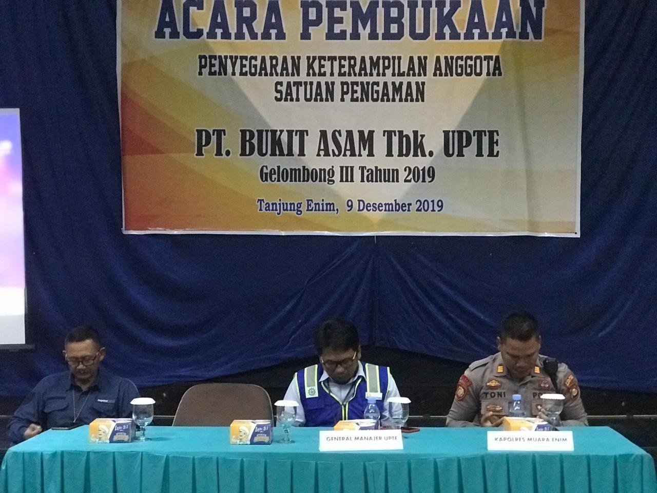 MUARA ENIM | PT Bukit Asam Tbk unit Tanjung Enim Kabupaten Muara Enim melakukan penyegaran keterampilan satuan pengamanan golongan III Tahun 2019 di Gedung Kamar Bola Kompleks Perkantoran PTBA Tanjung Enim, Senin (09/12/2019).