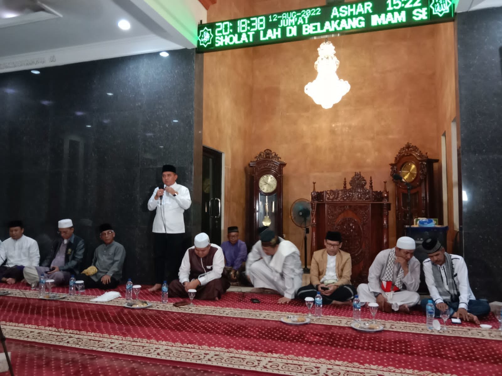 PANGKALPINANG – Bersama organisasi masyarakat (Ormas) Islam, Wali Kota Pangkalpinang, Dr. H. Maulan Aklil yang kerap disapa Molen mendengarkan tausyiah Prof. M Farid Fakhrudin tentang “Semarak Muharram 1444 H” di Masjid Permuthi Kelurahan Melintang Kota Pangkalpinang, Jumat (12/8/2022) malam.