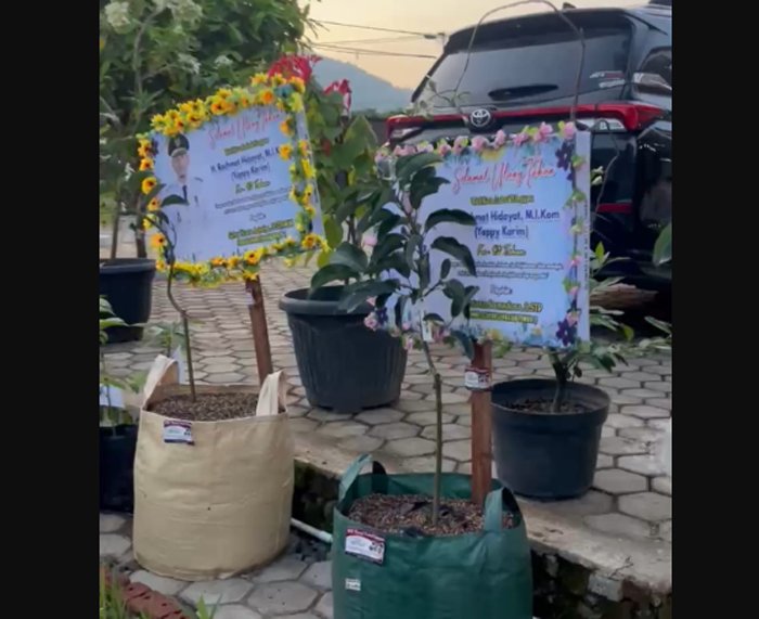 Sejak pagi hingga sore, berbagai elemen masyarakat, kerabat serta dari organisasi perangkat daerah, nampak mengirim bibit buah untuk media ucapan. Bibit-bibit tersebut, ditata rapi di halaman rumah Wali Kota, sehingga menciptakan suasana hijau yang mencerminkan semangat kepedulian terhadap lingkungan.
