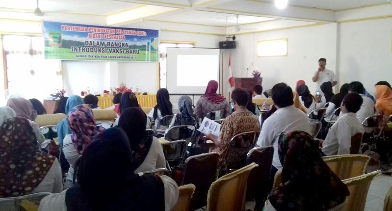 ” Vaksin MR itu akan diterapkan 2018 yang diawali dengan kegiatan kampanye MR. Pada bulan Agustus dan September 2018, dan sasarannya itu anak usia sembilan (9) bulan sampai 15 tahun, nah sekarang ini kita sosialisasikan dulu,” kata Syarial Fodril saat pertemuan Peningkatan Pelayanan SDG’s diaula Hotel Zuliant, Rabu (13/9).